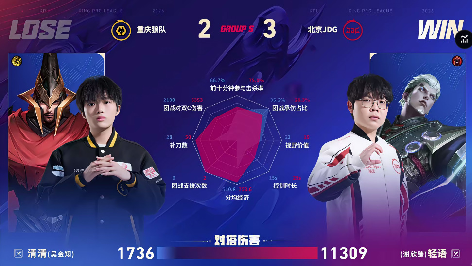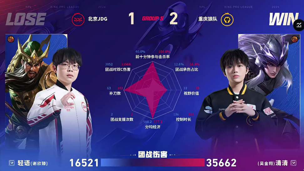 北京JDG 0-1 重庆狼队,本场选手表现你打几分?