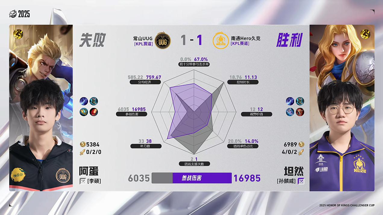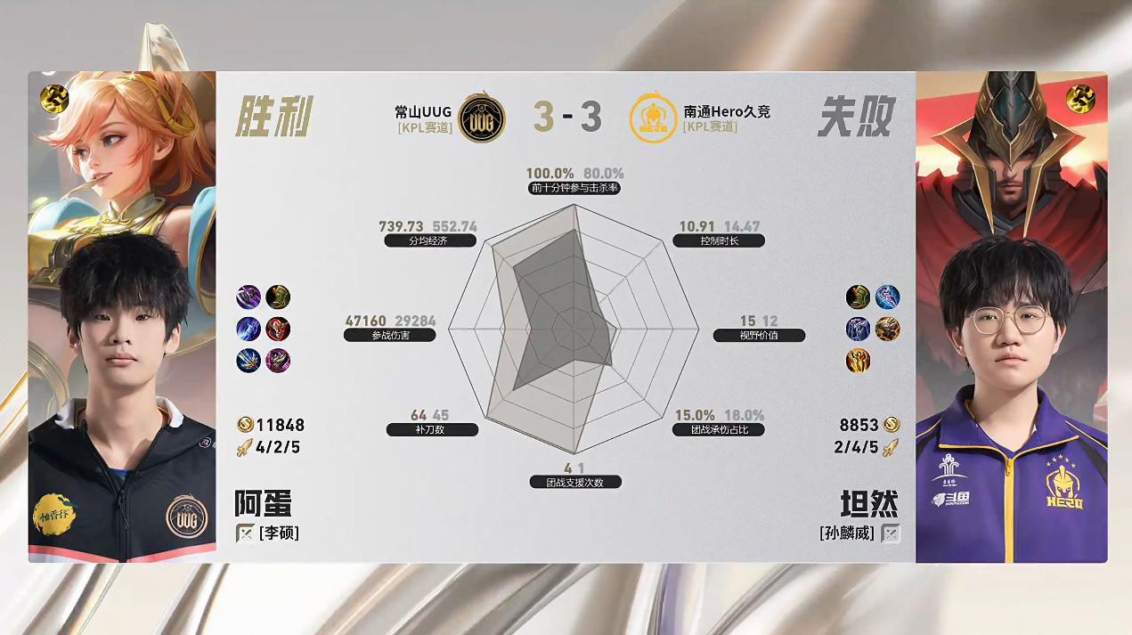 UUG/Hero第6局数据对比:卡密望阵亡数0,昊然团战承伤更高
