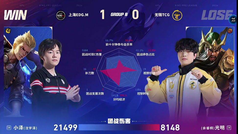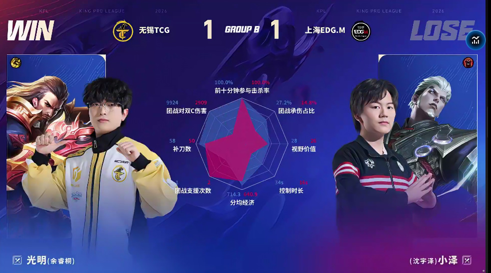 TCG/EDG.M第三局数据对比:夏凌杨戬团战伤害高达七万七