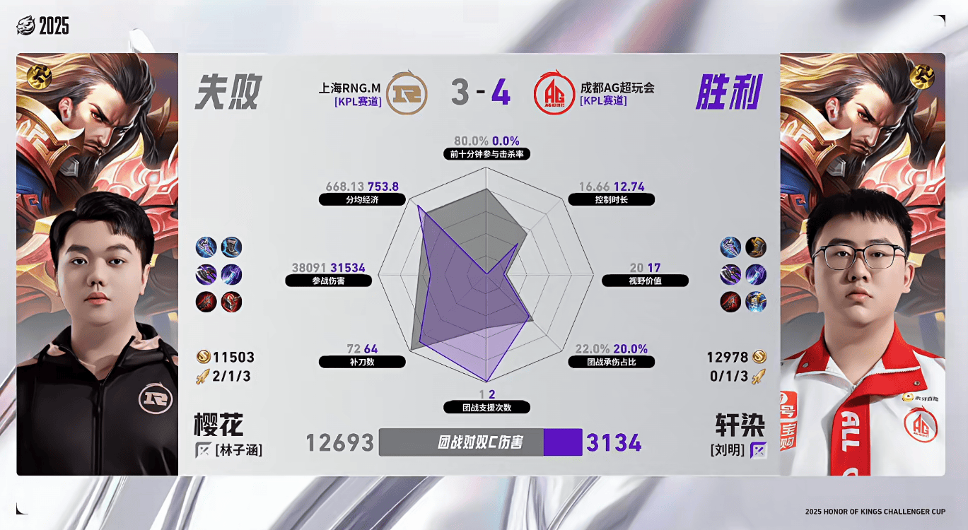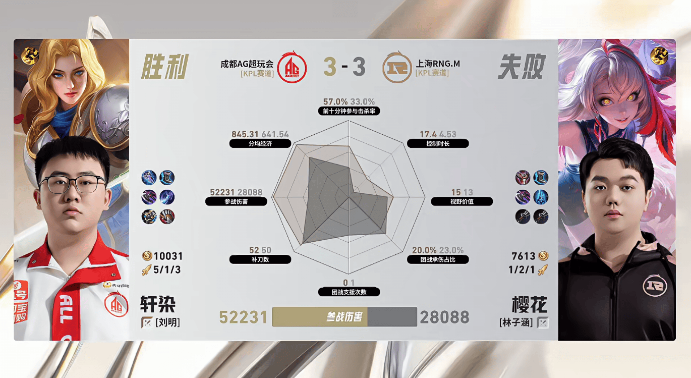 AG/RNG.M第六局数据对比:轩染夏洛特多数据领先樱花影