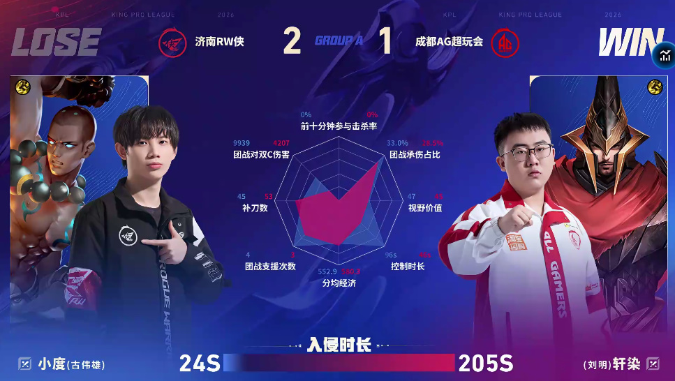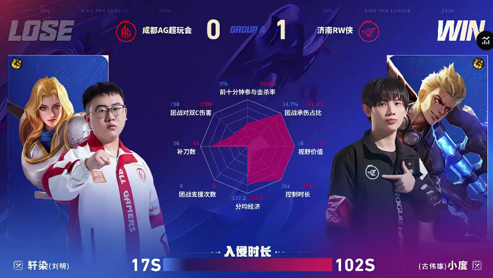 AG/Hero第一局数据图:小俞敖隐全包围妖刀公孙离
