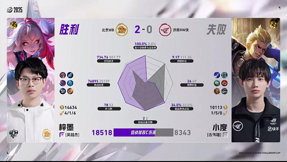 WB/RW第二局数据图:梓墨/暖阳多项数据拉满