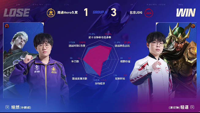 JDG/Hero第四局数据对比:小寒戈娅几乎全包围妖刀