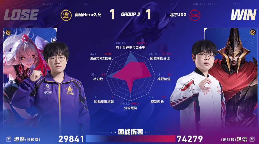 JDG/Hero第二局数据对比:无畏少司缘支援成功率百分百