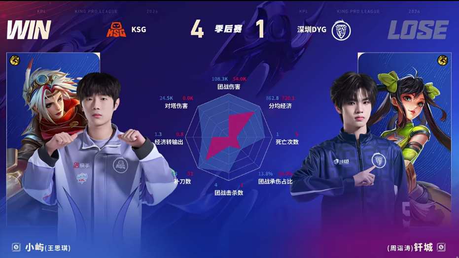 KSG 4-1 深圳DYG,本场选手表现你打几分?