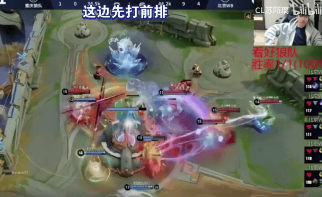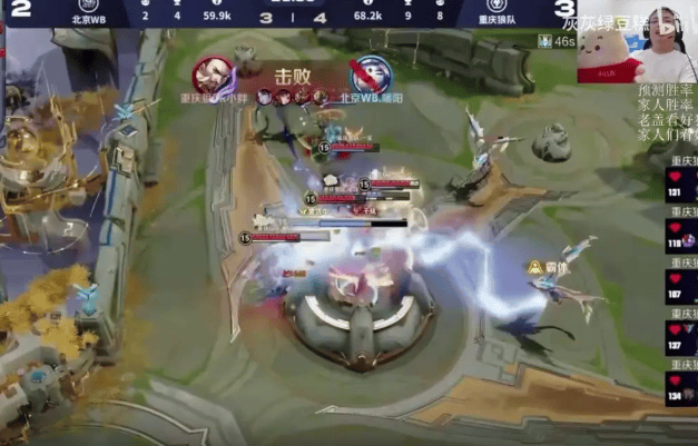 杨戬狗上前想凶元坦一套,WB果断反打,小胖第三次阵亡