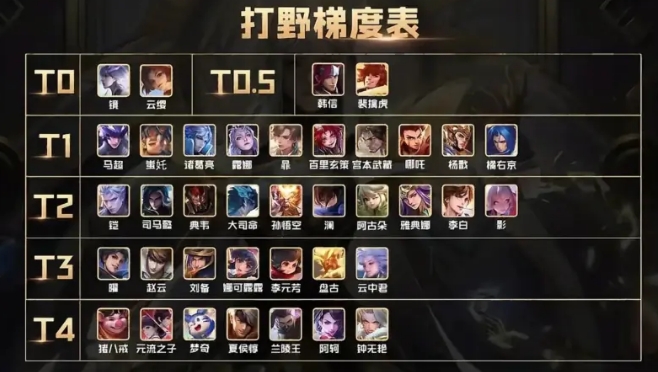打野梯队:4位T0野王,诸葛亮升至T1,上分首选云缨