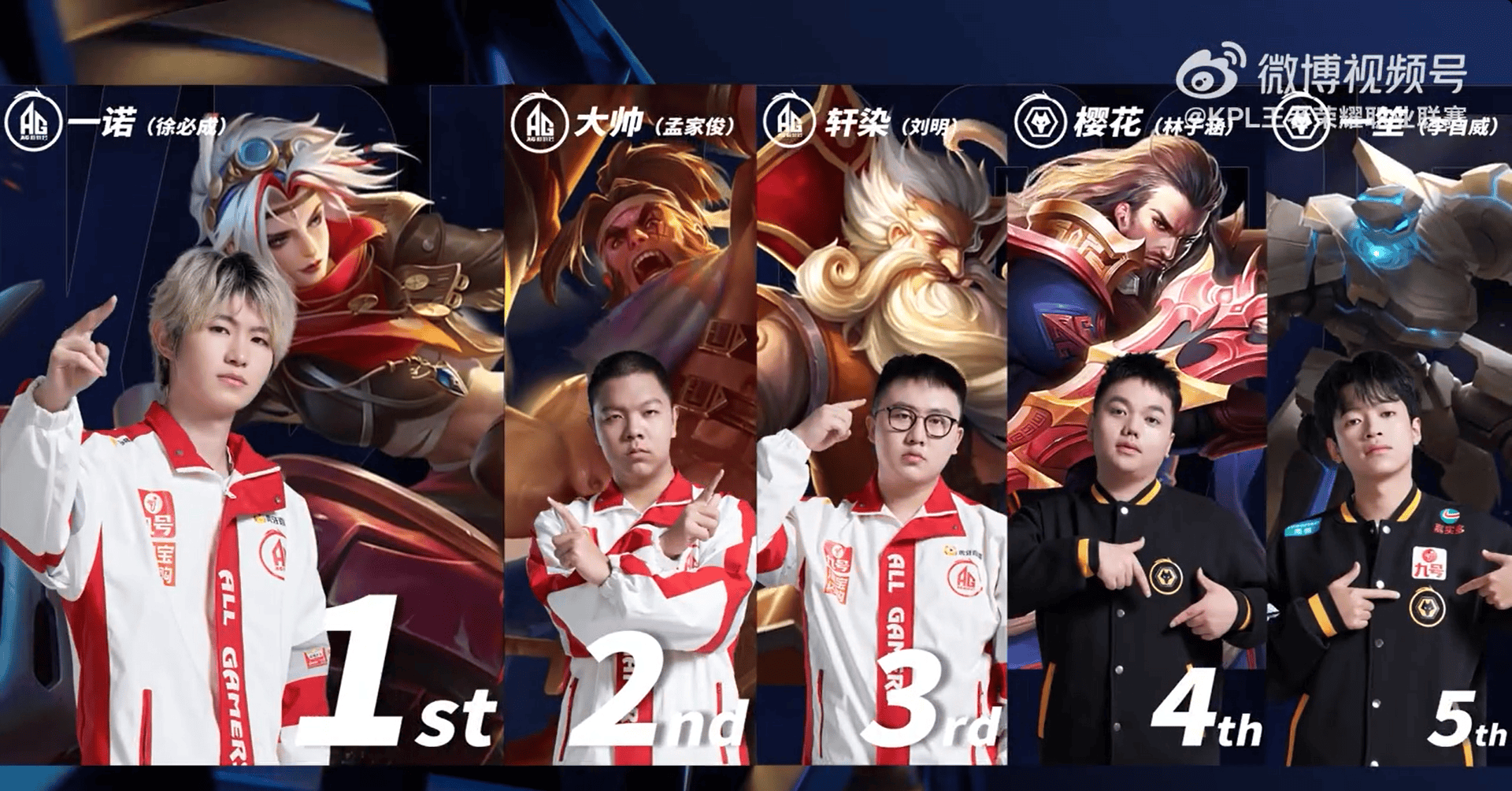 年总决赛TOP5:一诺戈娅榜首,樱花曹操/一笙盾山上榜