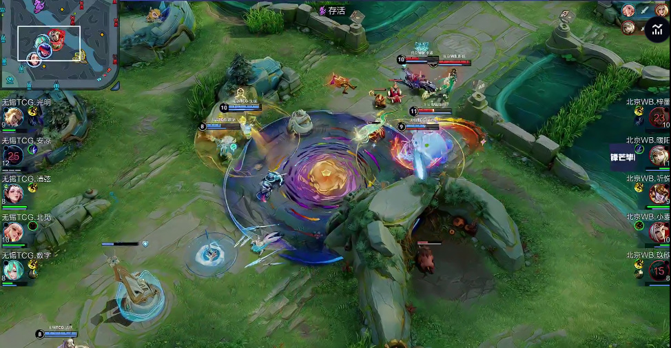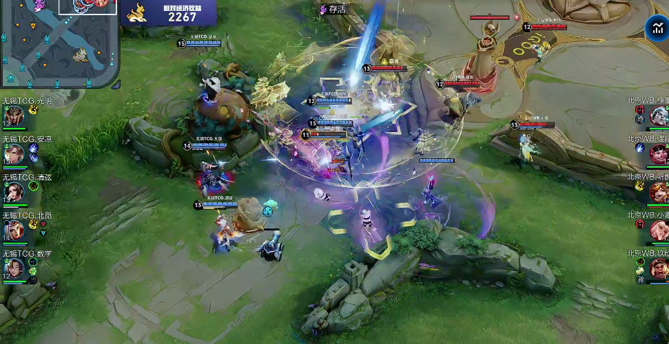TCG众人抱中反攻,在中路混战打出1换2