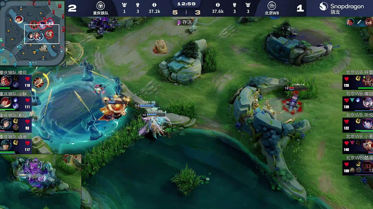 WB先反蓝,狼队众人撤退暃单人进场被拆火,小胖倒下