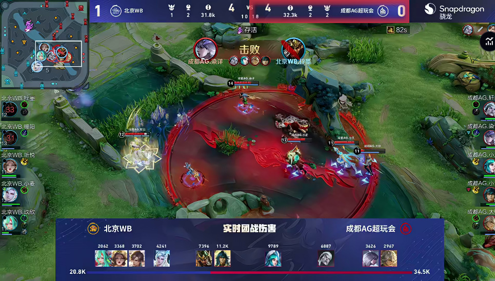 西施预判艾琳闪现拉回,队友补上伤害完成击杀