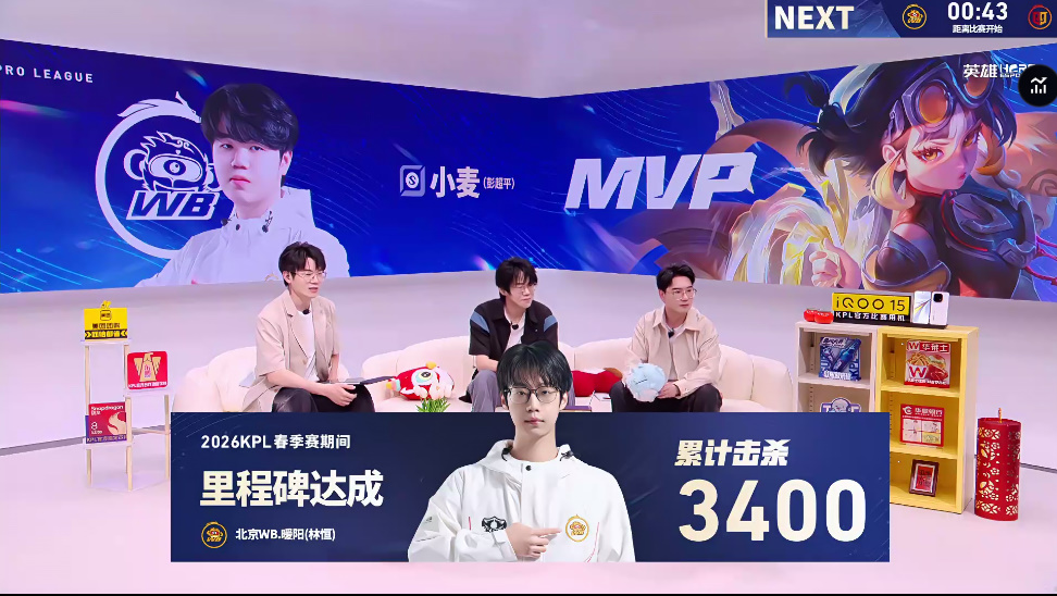 第一局比赛后,北京WB.暖阳达成里程碑:3400累计击杀