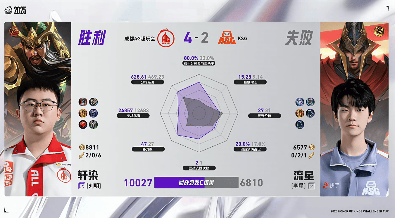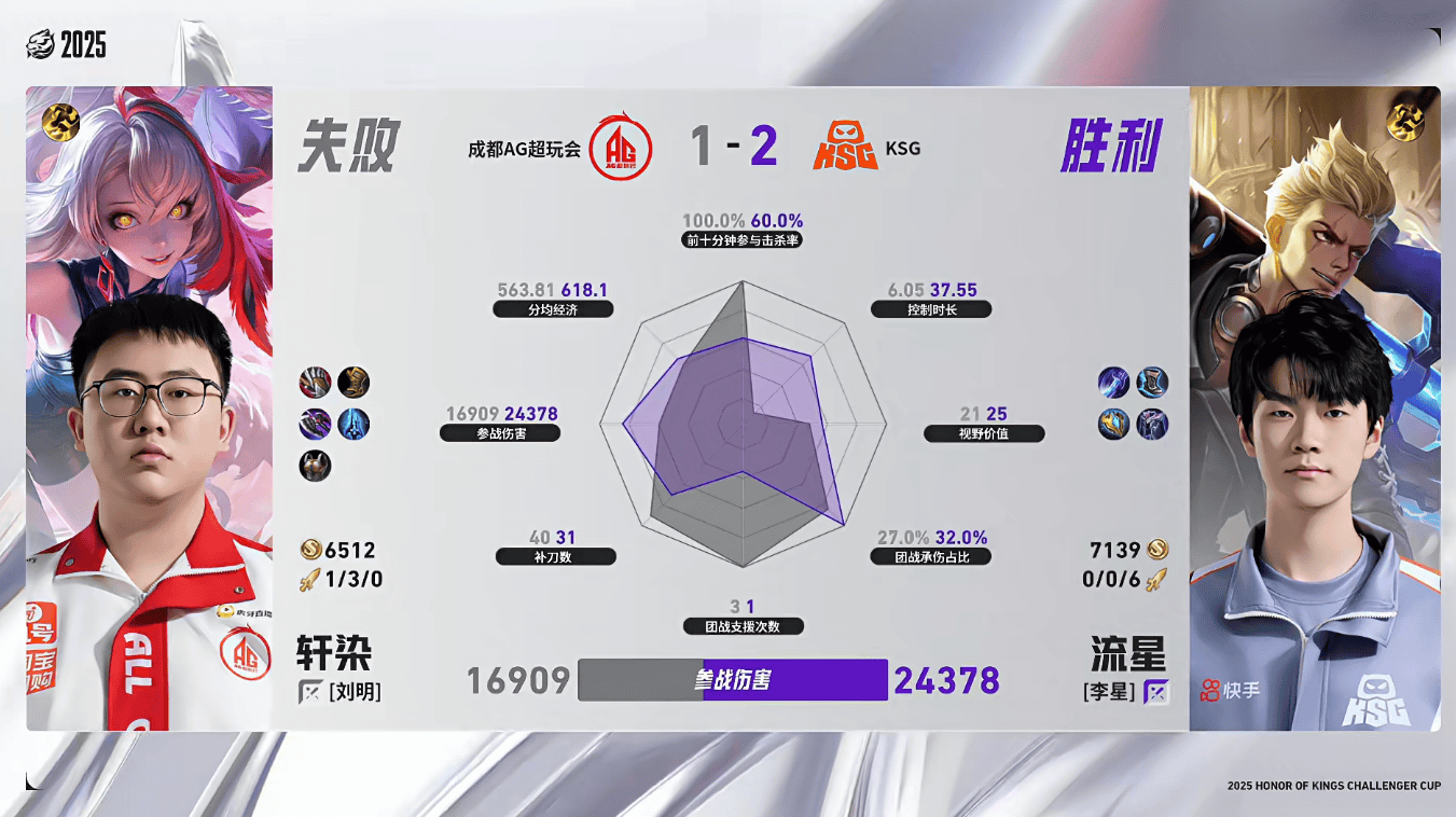 AG/KSG第六局数据对比:轩染关羽多数据包围流星蒙恬