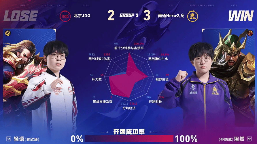 Hero/JDG第五局数据对比:坦然关羽开团成功率百分百