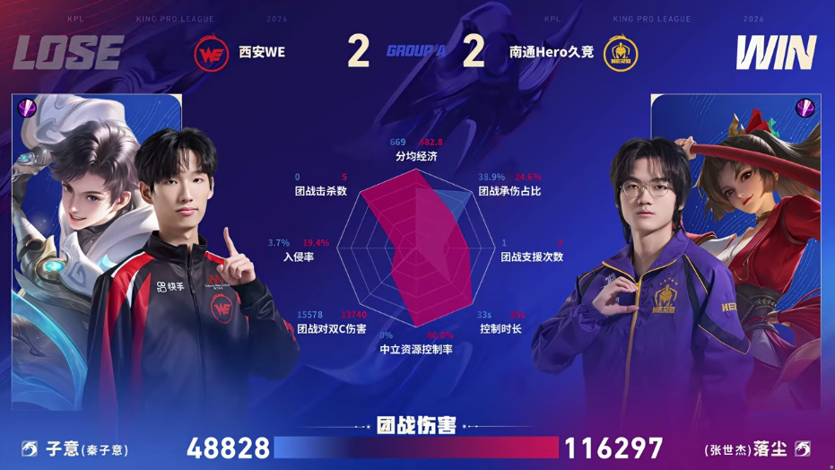 Hero/WE第四局数据图:落尘云缨团战伤害高达十一万