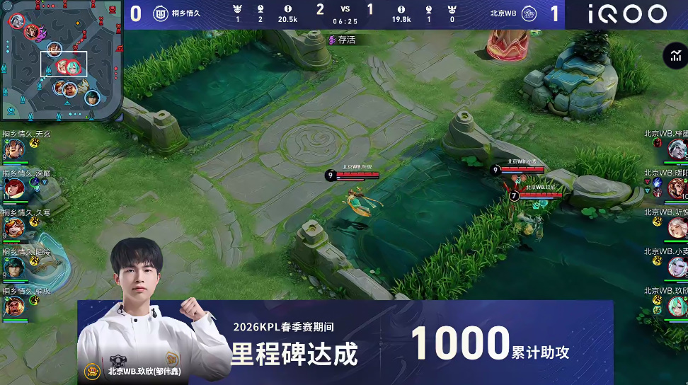第二局比赛中,北京WB.玖欣达成里程碑:1000累计助攻