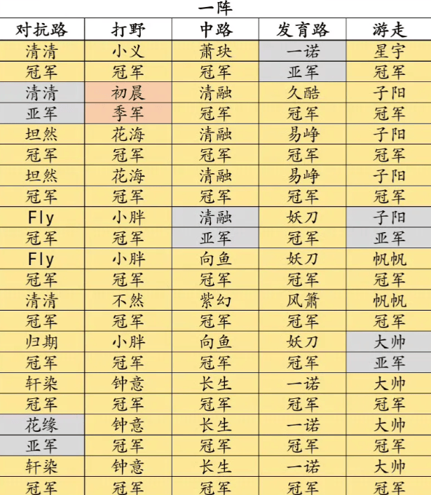 KPL一阵汇总:小胖、钟意三次一阵,一诺四次一阵