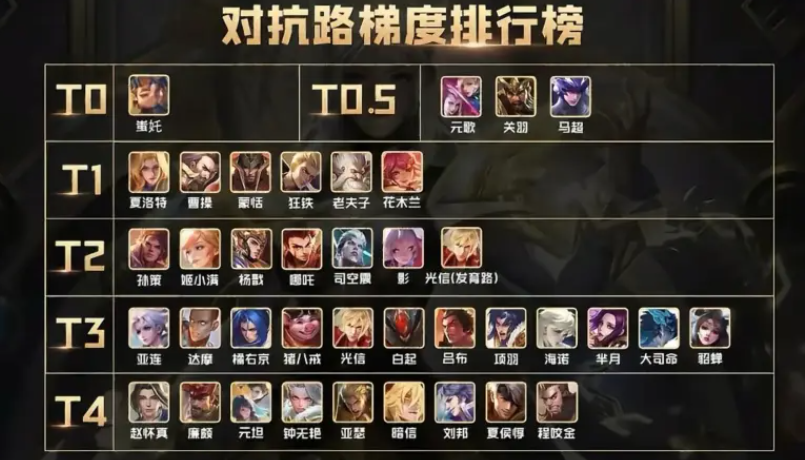 对抗路梯队:4位T0战边,狂铁降级T1,上分优先选蚩奼