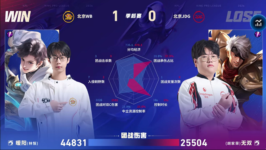 北京JDG 0-1 北京WB,本场选手表现你打几分?