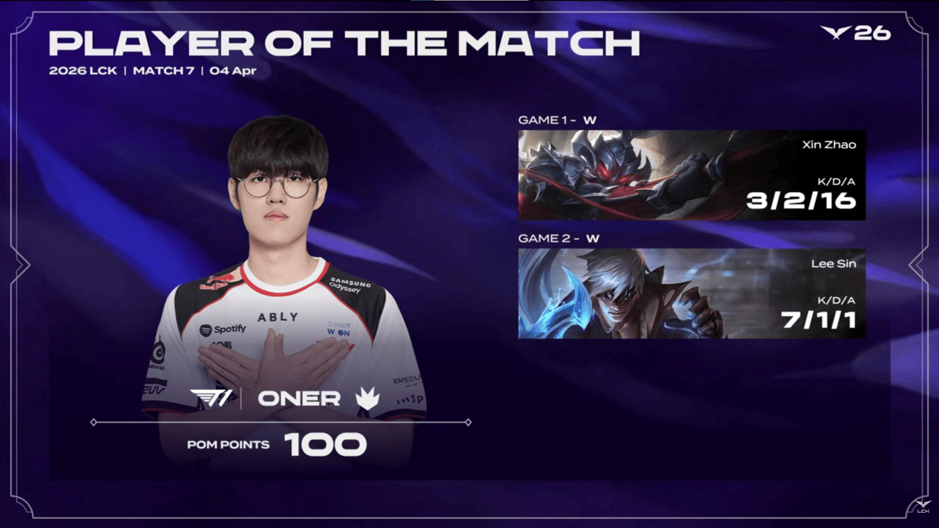 Oner两局合砍10/3/17的战绩,拿下T1对阵HLE系列赛MVP