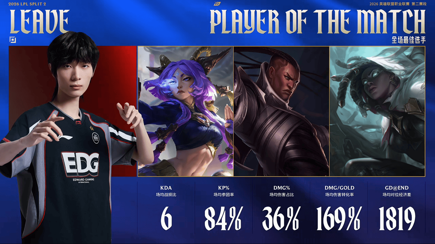 Croco首局使用赵信发挥出色,斩获LNG对阵EDG系列赛MVP