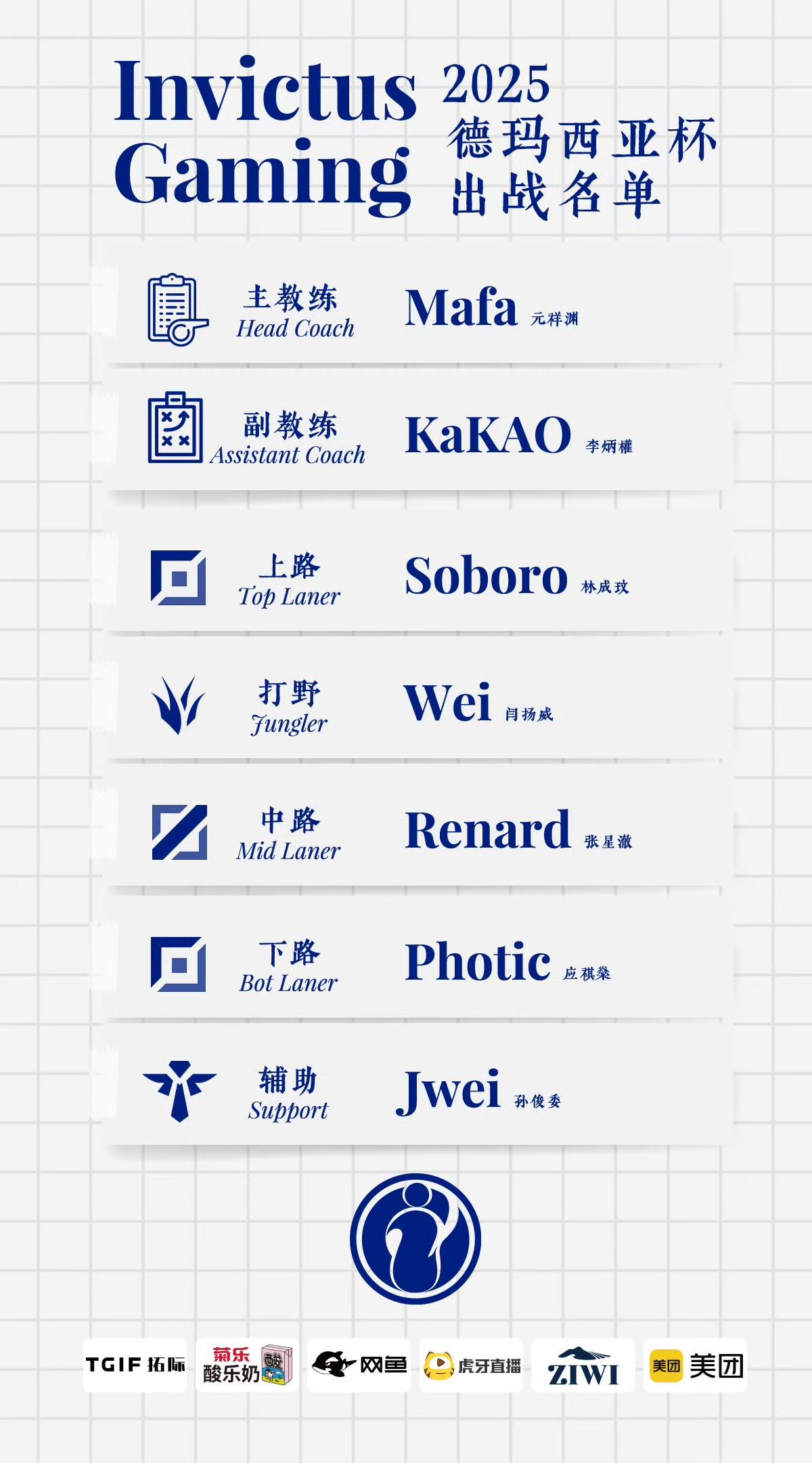 iG发布德杯出征大名单:新援悉数上场,Rookie休息