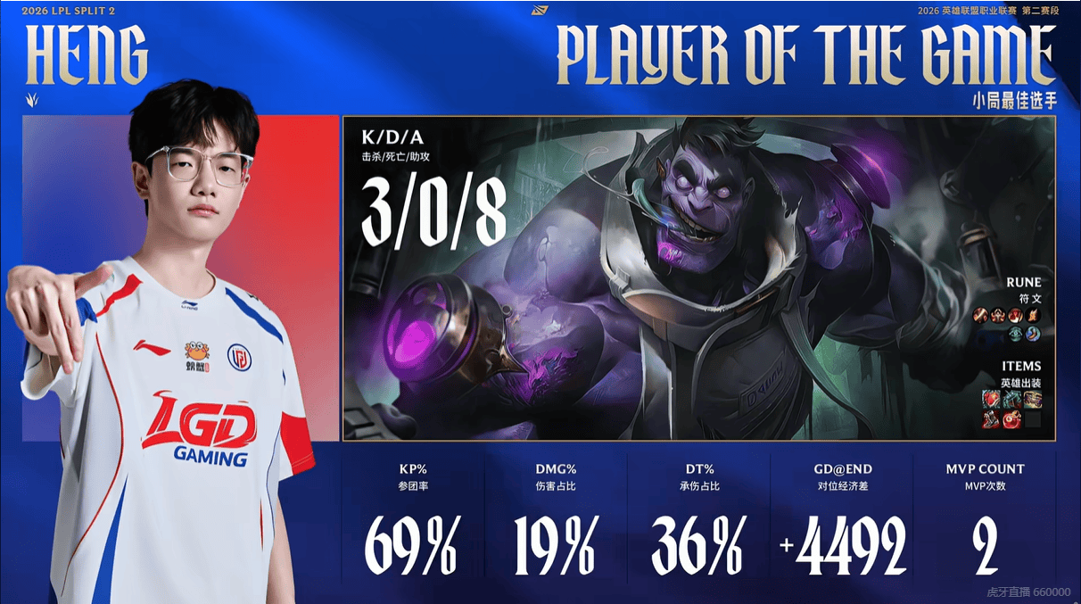 3/0/8稳健节奏,Heng再度斩获LGD对阵OMG第三局MVP