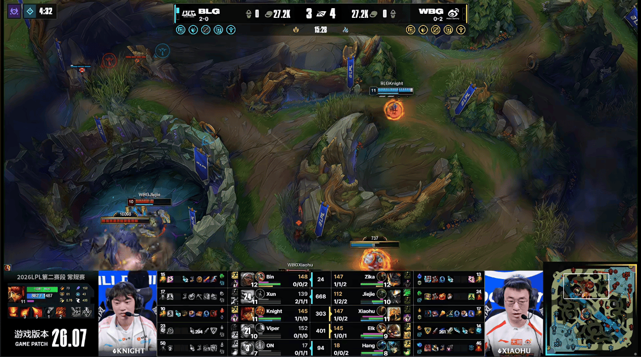 BLG上野两人伤害爆炸,两人高地横冲直撞二打四随后一波