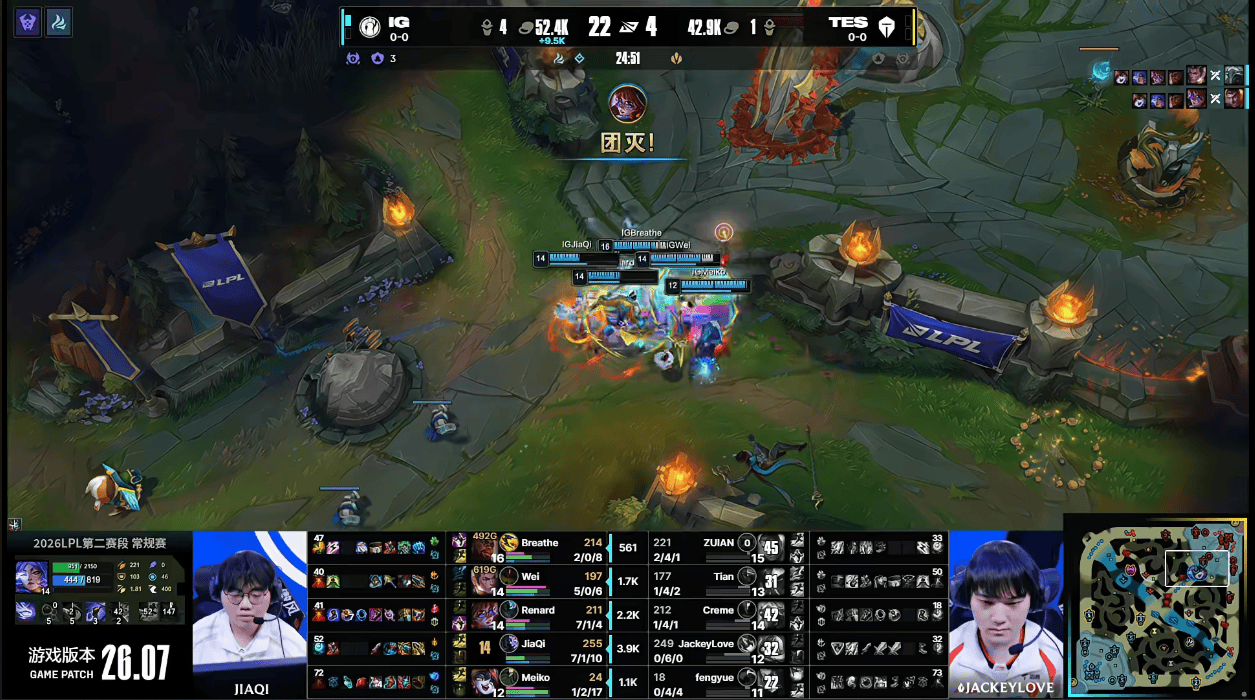 LPL:下路火力对拼IG占尽优势,JiaQi芸阿娜轻松拿下双杀