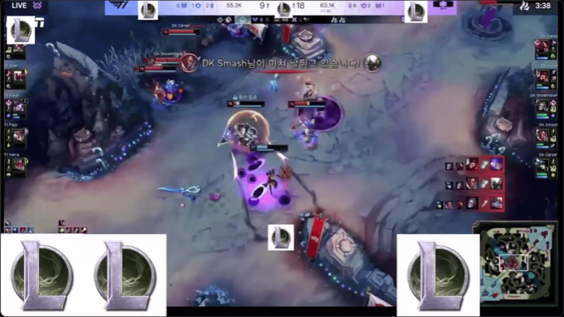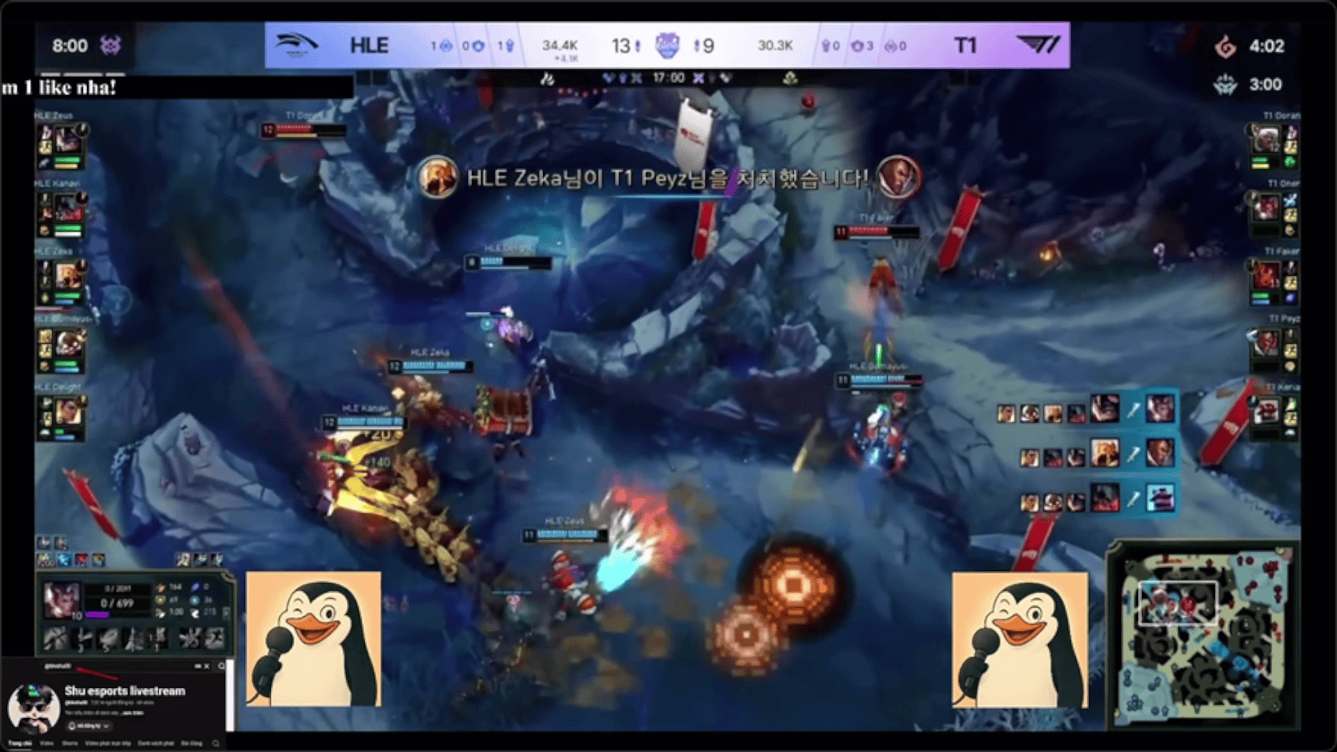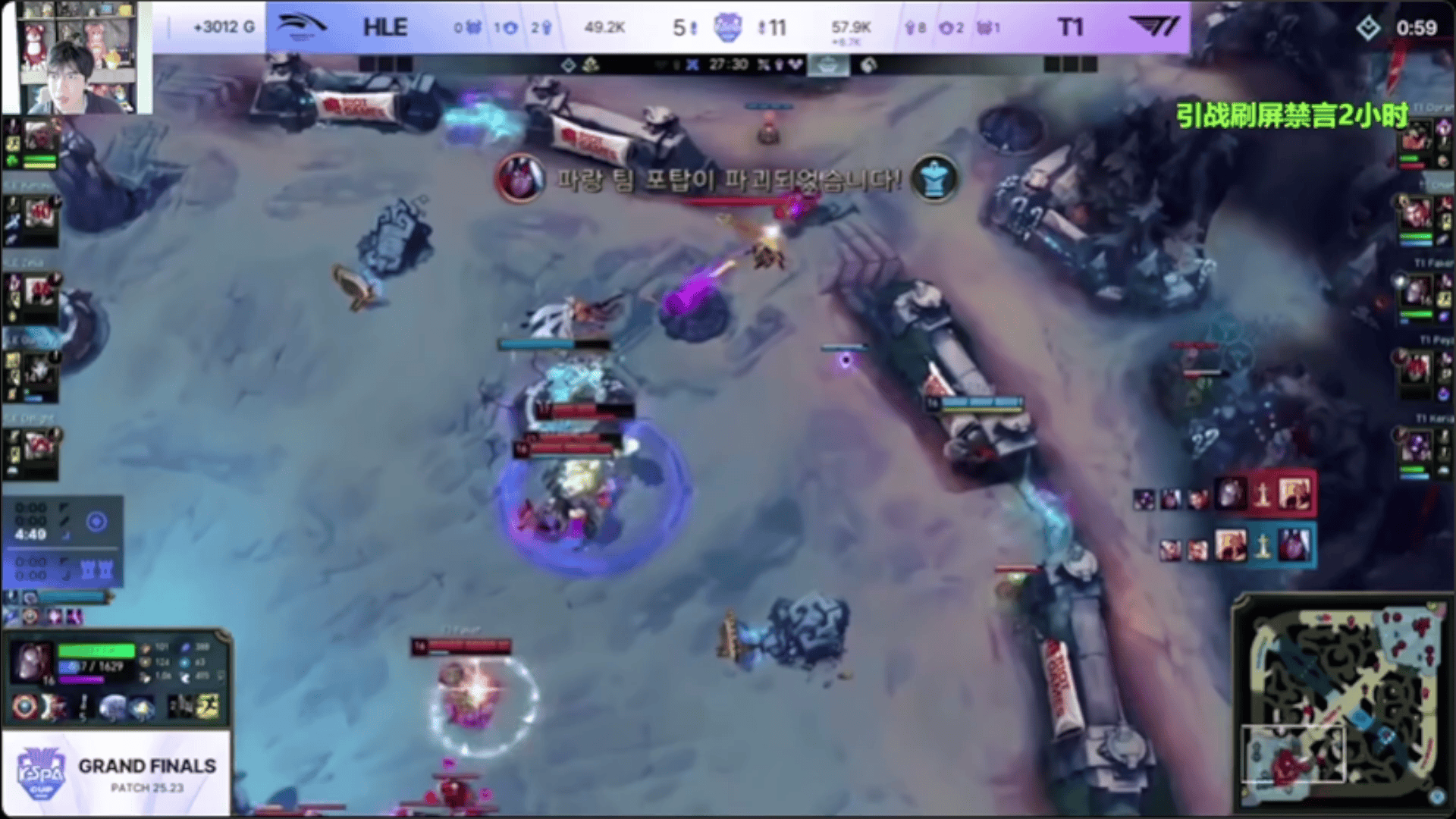Doran阿萝拉越塔失误阵亡,HLE抓到机会反击1换4大胜T1