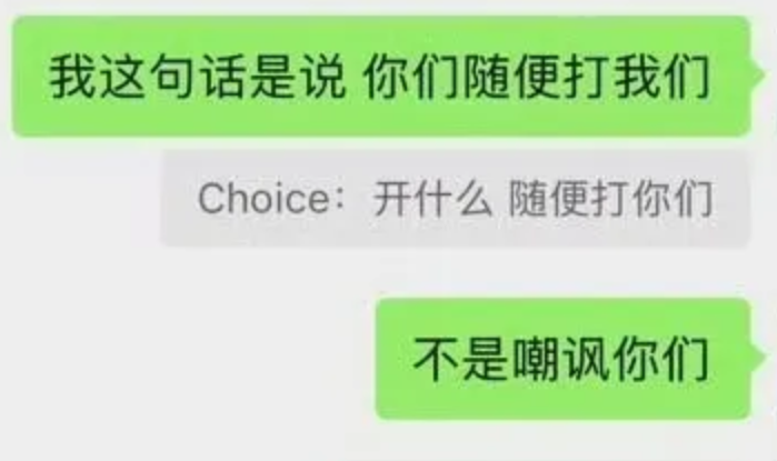 爱笑:我那句话的意思是你们随便打我们,不是嘲讽你们