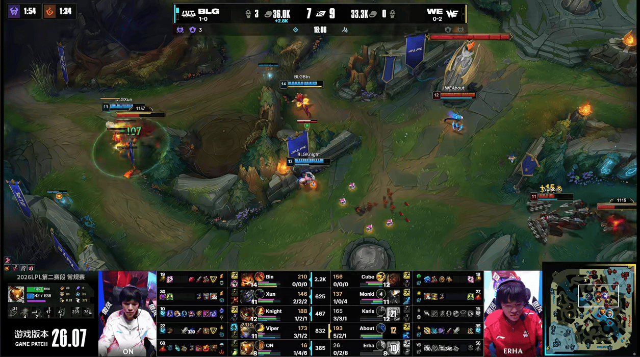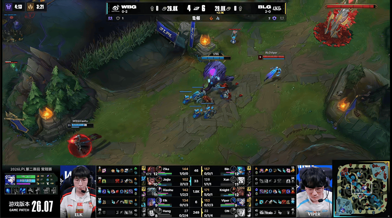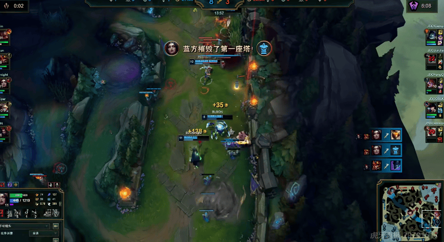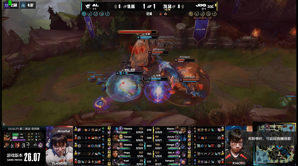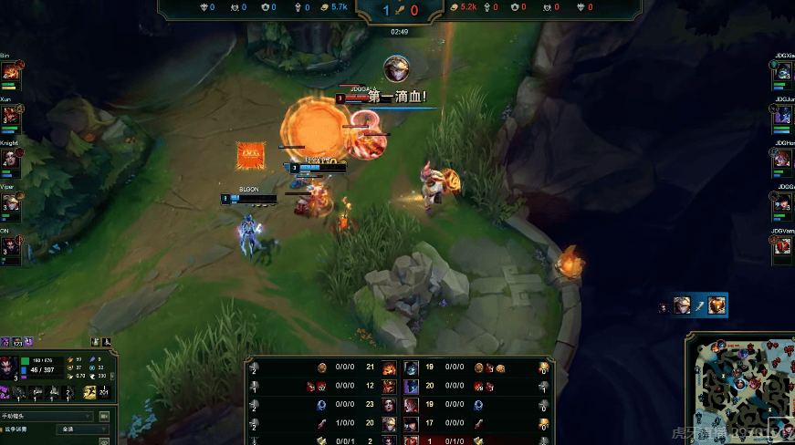 双方河道拉扯不断,Xiaoxu狼母果断大招进场JDG拿下一血