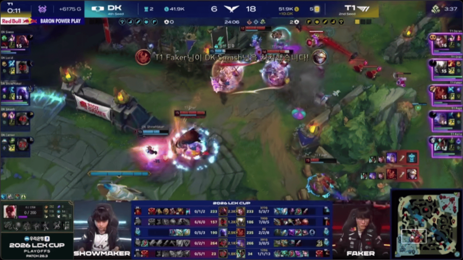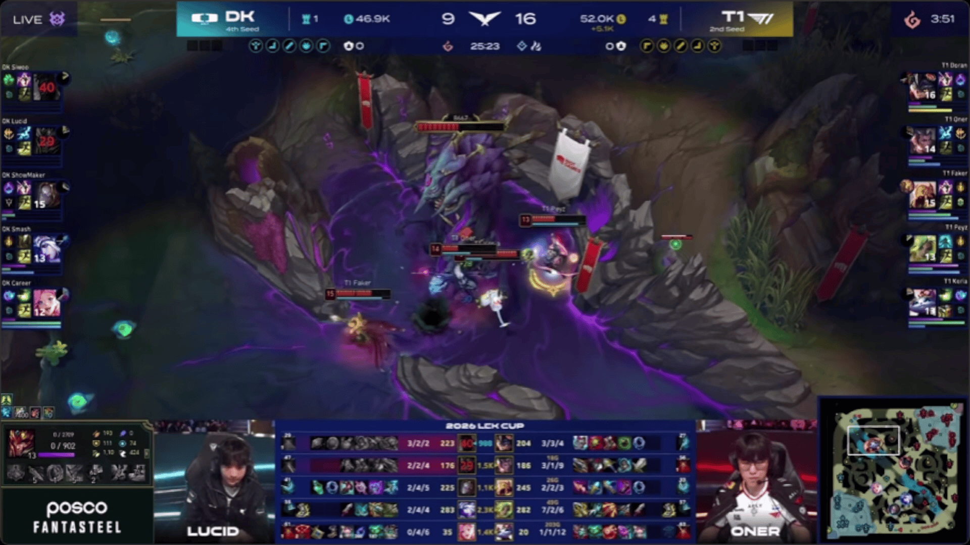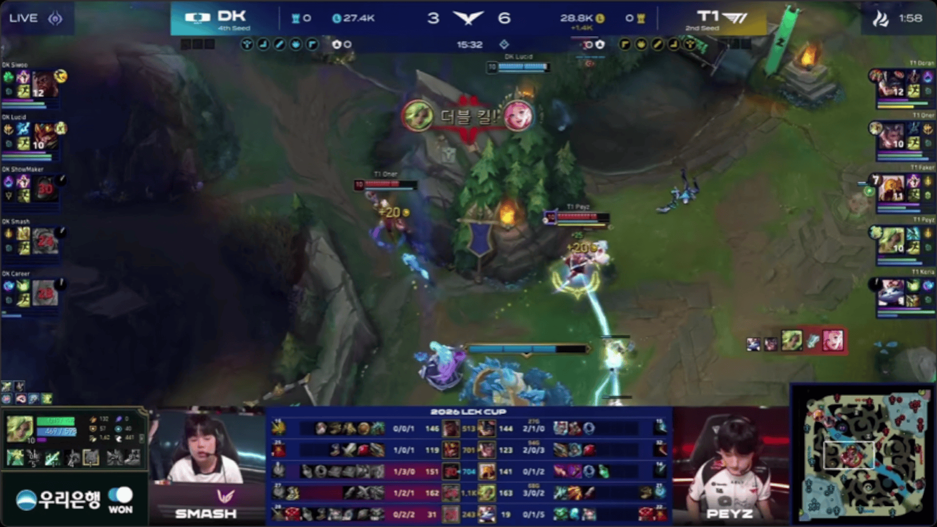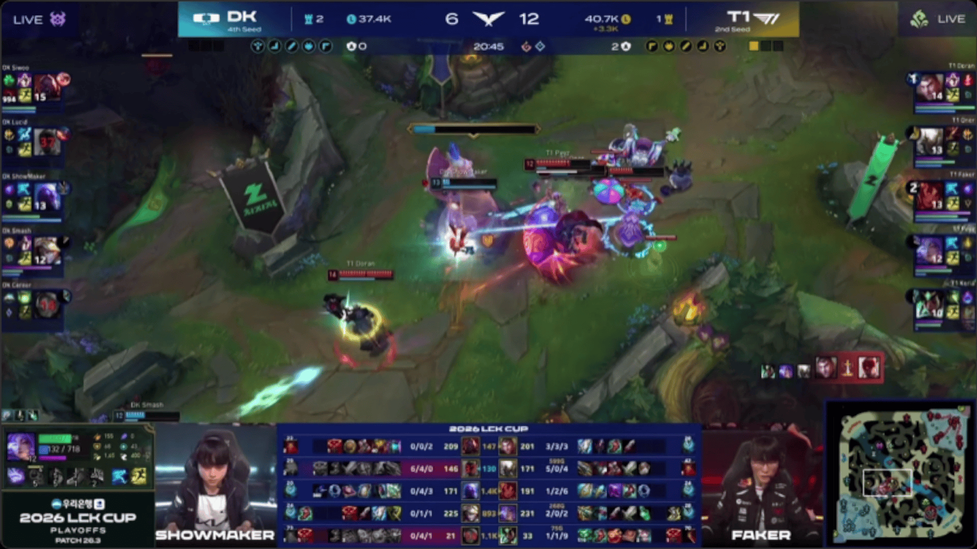LCK:Peyz泽丽强行带猫打四个,DK中路反击2换4打退T1