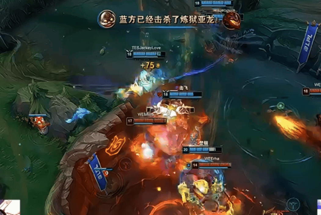 LPL:TES拿下火龙魂同时打出0换5,顺势一波推平WE