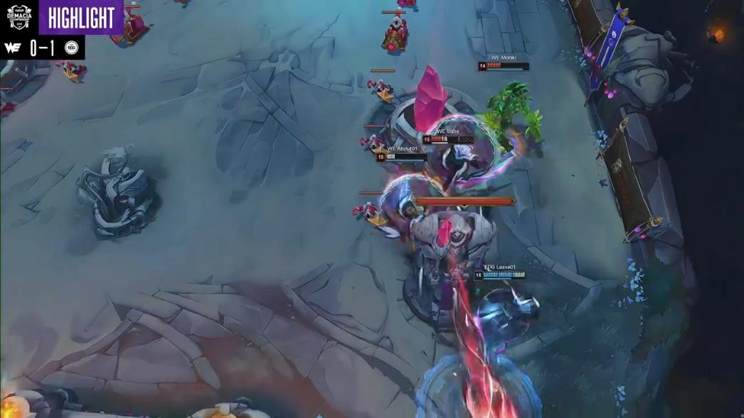 Wei蔚反手锁ADC配合芸阿娜完成击杀,IG人数劣势但打出1换2