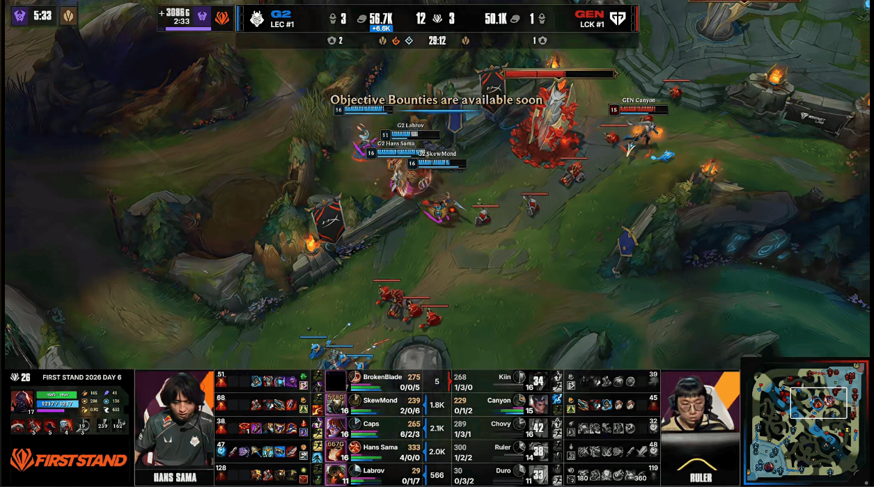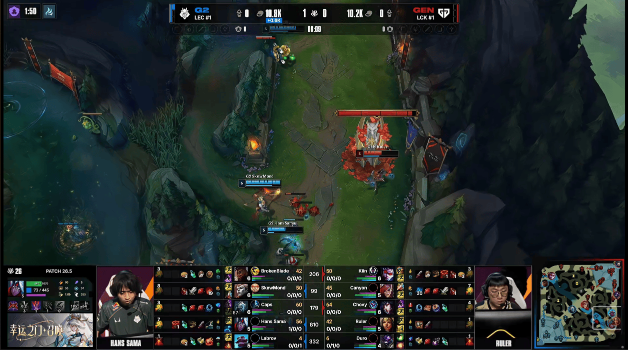 LOL官推:2026年击败GEN一局的队伍有DK、BFX、和G2