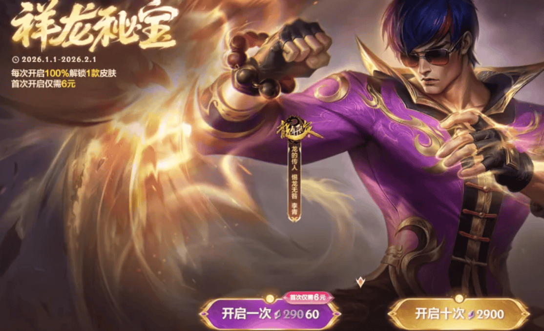 首充6元即可获得新皮肤,祥龙秘宝活动你参与了吗?