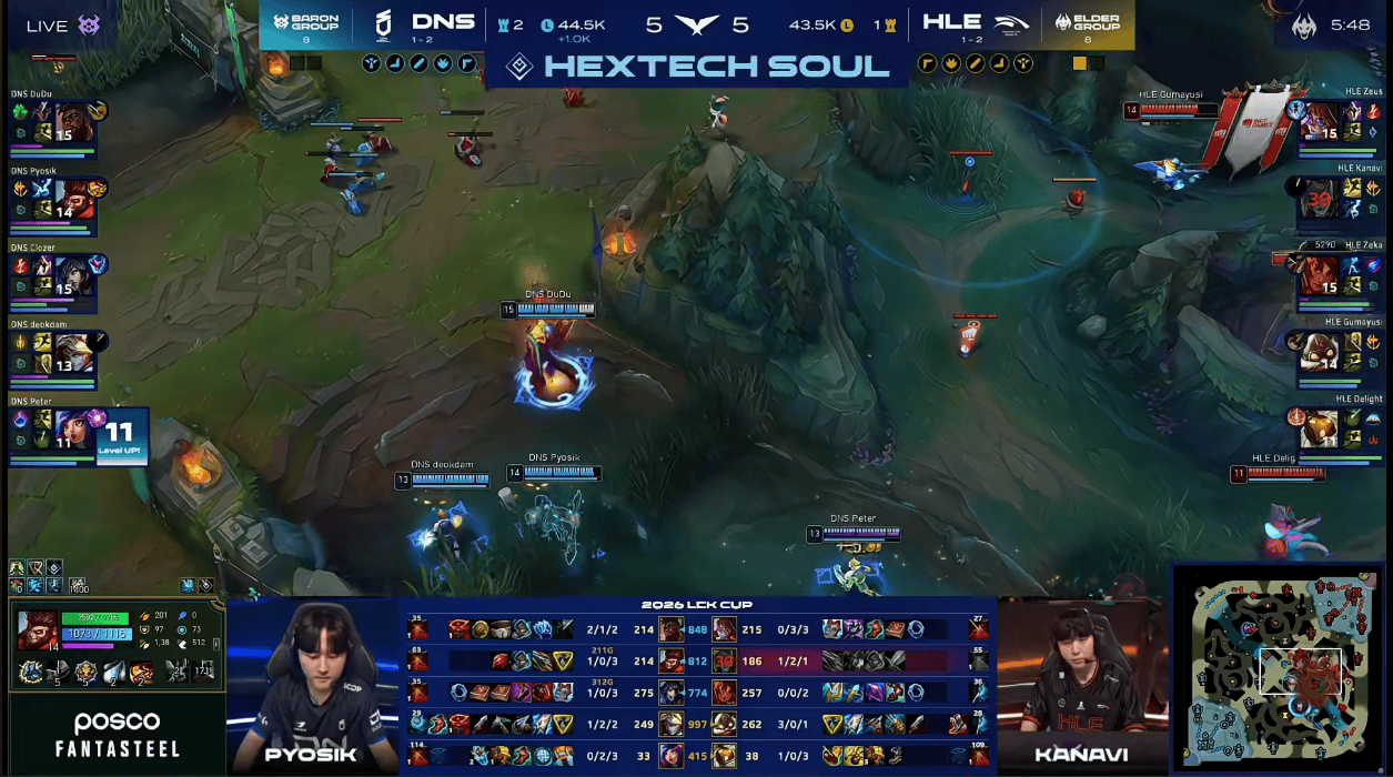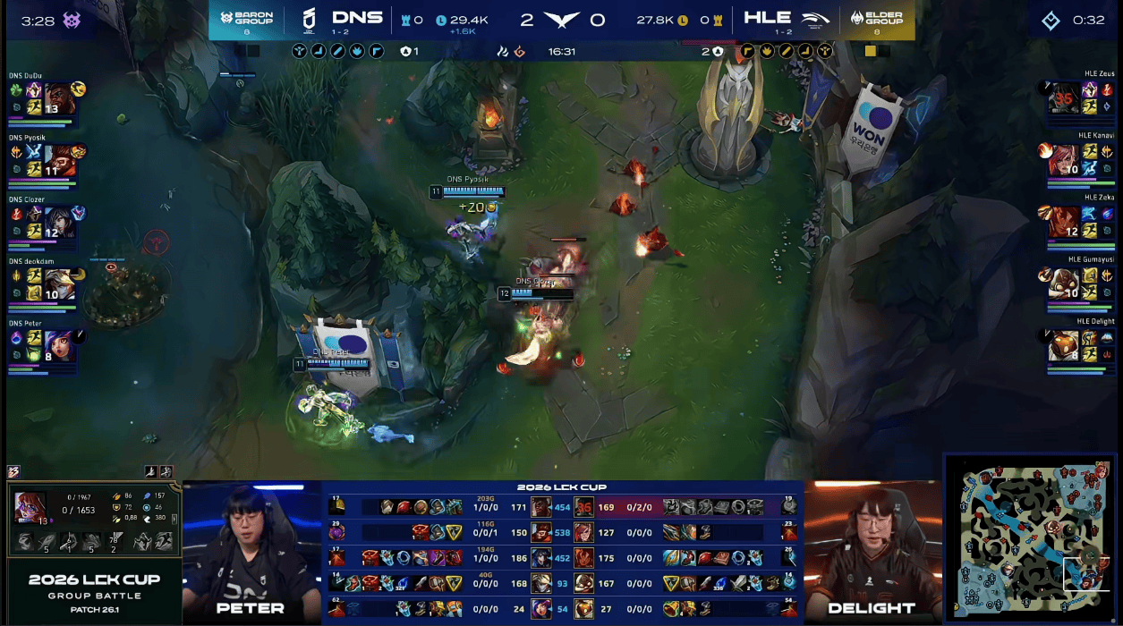 LCK:双方连续缠斗两波团战,最终DNS抢下电龙魂打赢团战