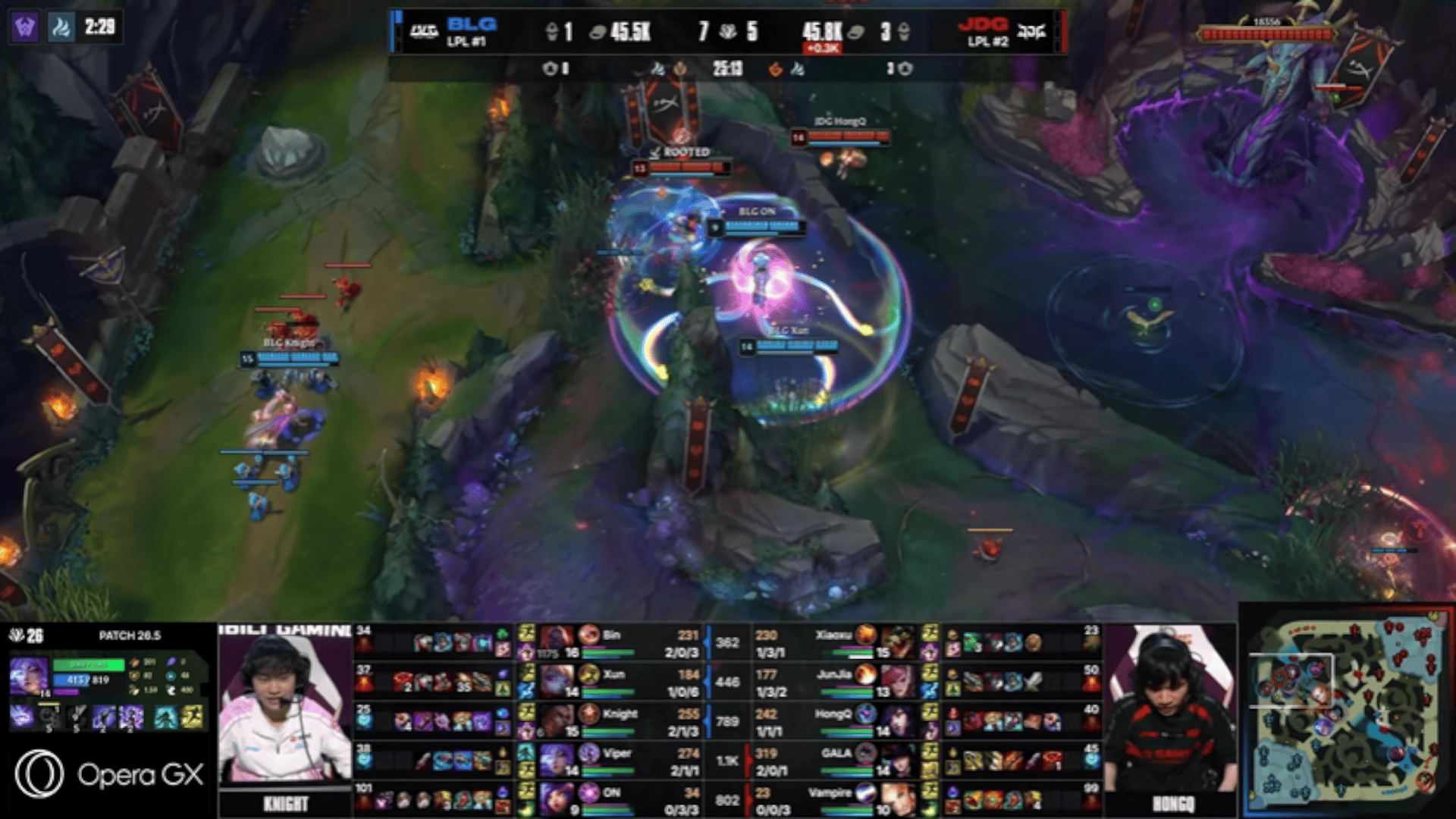 ON率先阵亡,BLG四打五反手1换5团灭JDG