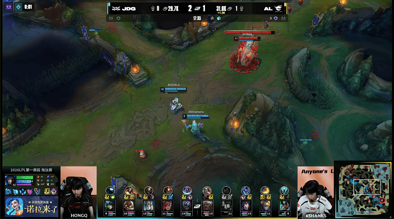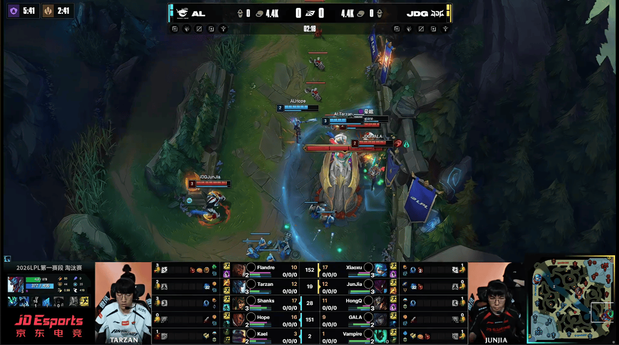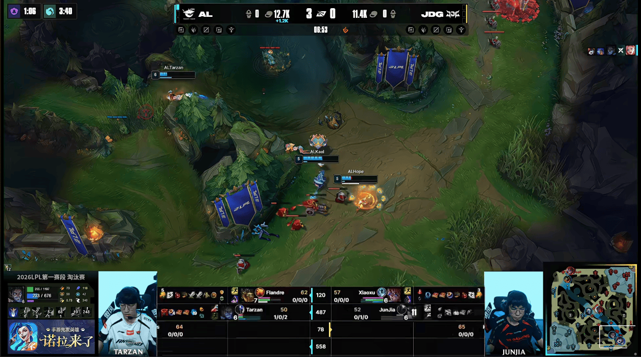 AL上头决策越塔满血厄锤,JunJia及时支援JDG完成0换2