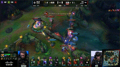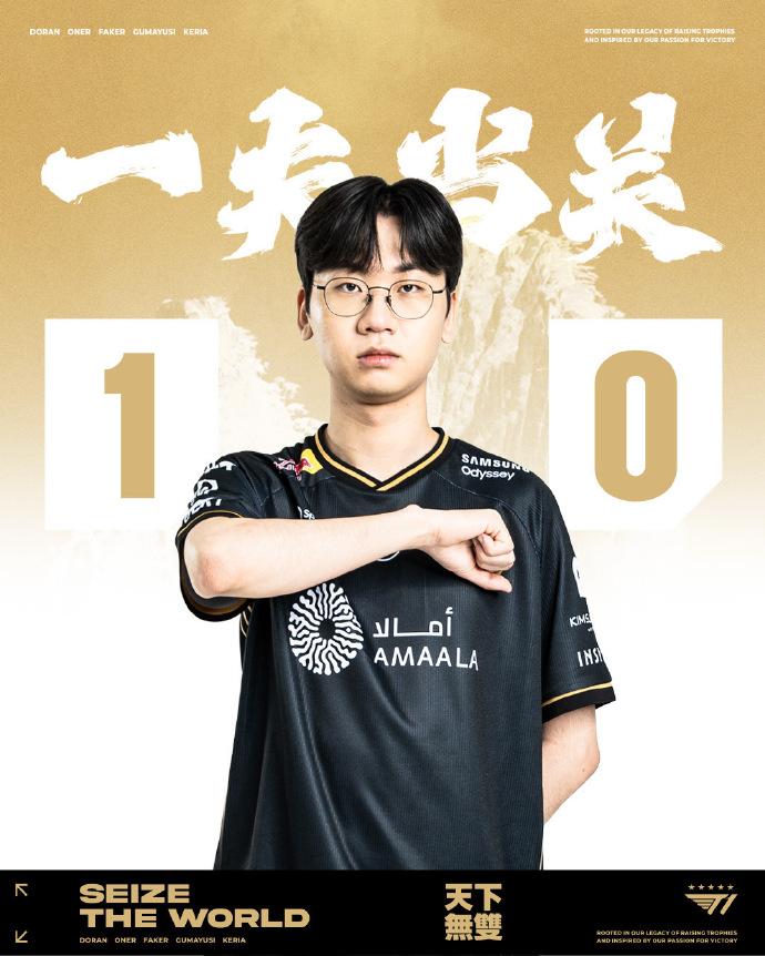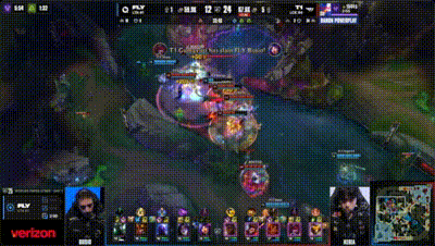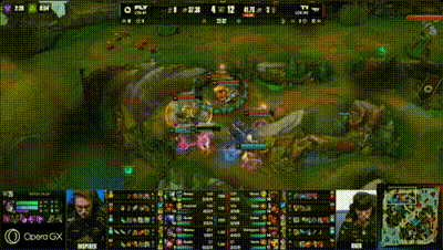 Gumayusi霞爆砍三杀,T1河道团1换4大胜FLY