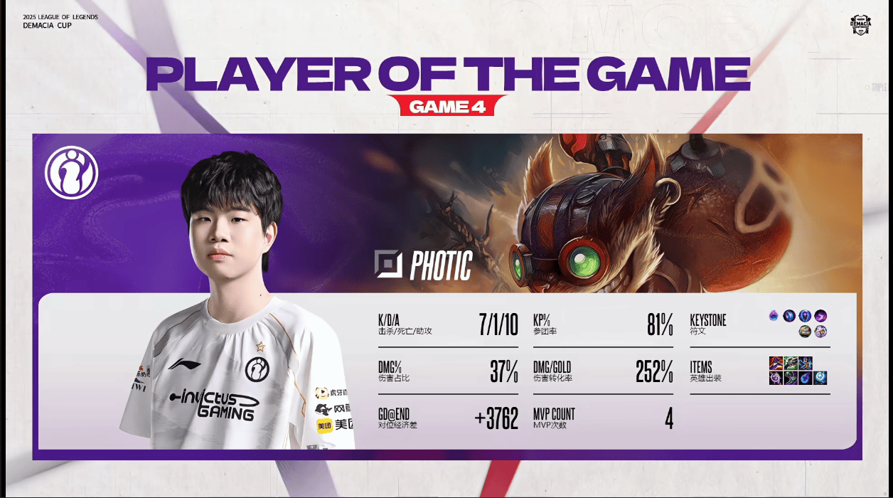 Photic炸弹人打出7/1/10战绩,斩获IG对阵TES第四局MVP