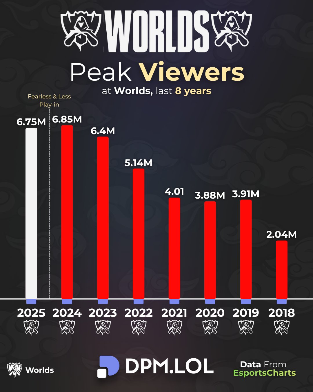 外媒统计历年S赛观赛峰值:18年以来逐年升高,今年小有回落