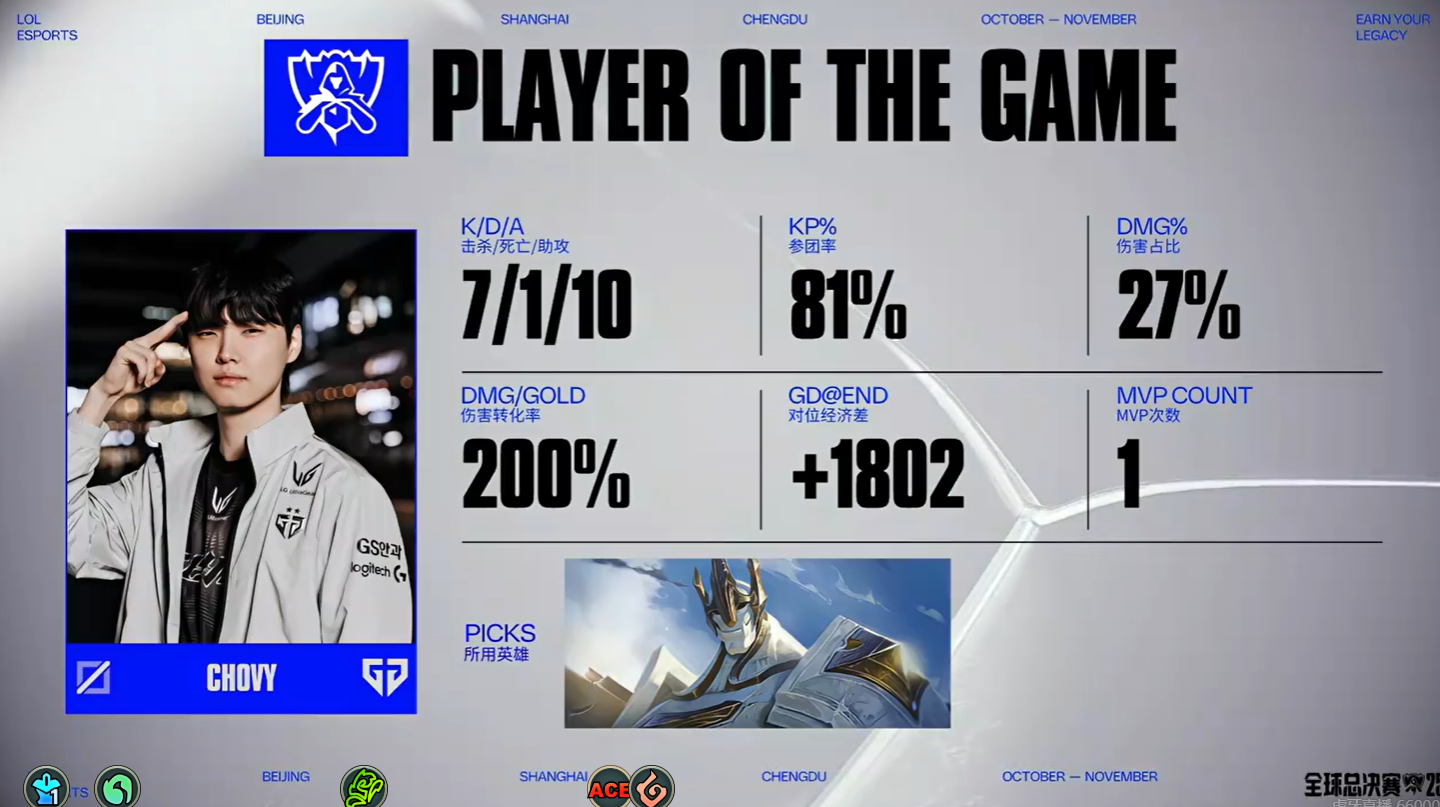 Chovy加里奥打出7/1/10的战绩,拿下GEN对战PSG全场MVP