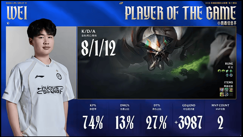 Wei整个系列赛发挥出色,斩获IG对阵NIP系列赛POM
