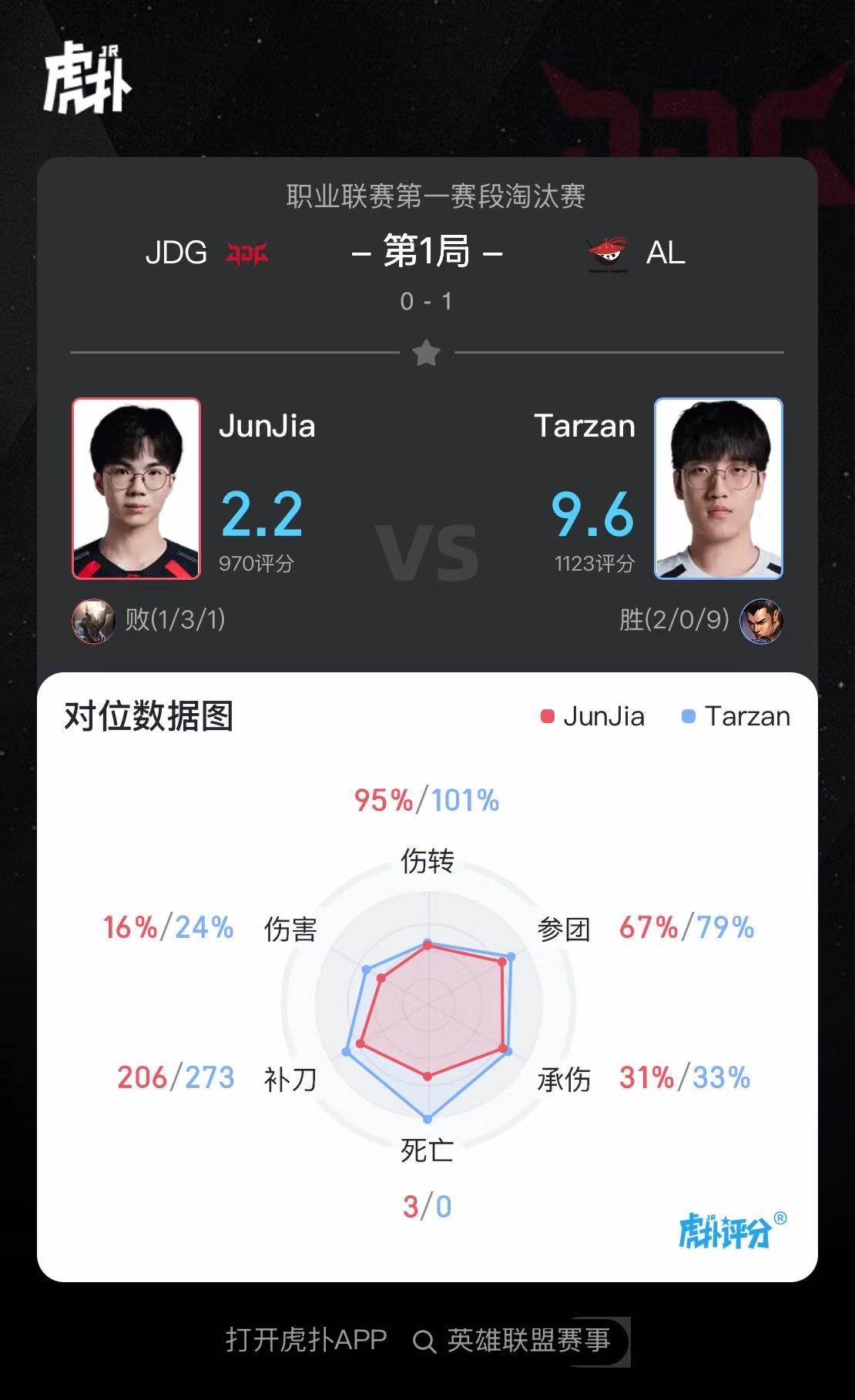 Tarzan赵信打出2/0/9战绩,斩获AL对阵JDG第一局MVP