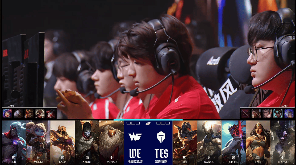 WE对阵TES首局BP:Cube自信一楼选出韦鲁斯上单