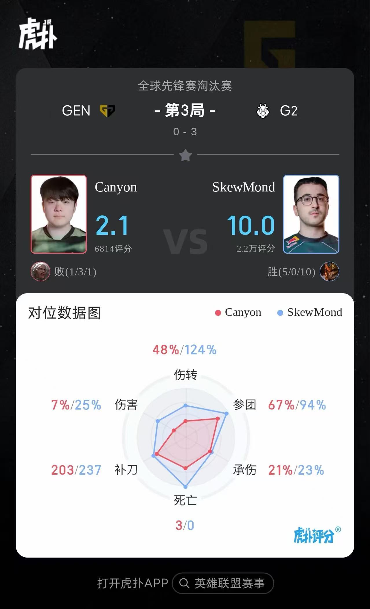 SkewMond皇子打出5/0/10战绩,斩获G2对阵GEN第三局MVP