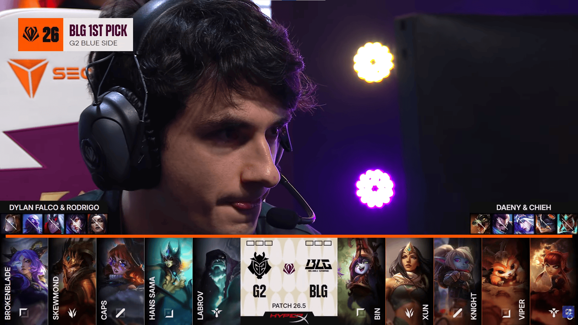 BLG对阵G2首局BP:BB末选掘墓打Bin纳尔,BLG一抢璐璐