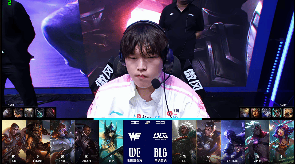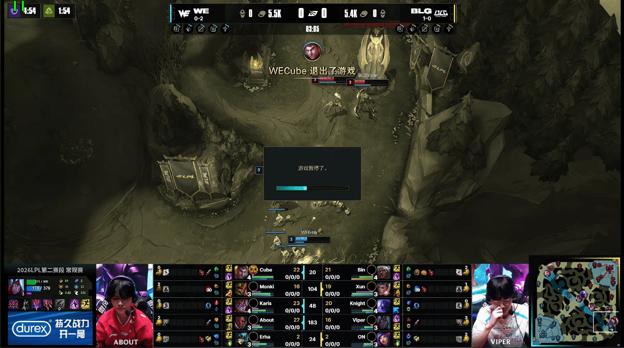 BLG对阵WE第一局,Cube因游戏内问题退出游戏而发生技术暂停